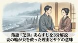 浜で拾った50両が、魚屋の夫婦の暮らしを一度壊しかけ、妻のひと言が人生を立て直していくのが『芝浜』です。酒と貧しさ、夫婦の覚悟、最後のサゲが沁みる理由を丁寧に読み解きます。