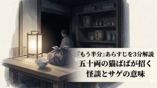怪談噺 落語『もう半分』あらすじを3分解説|五十両の猫ばばが招く怪談とサゲの意味