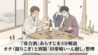 滑稽噺 落語『寄合酒』あらすじを3分解説|オチ(擂りこぎ)と別題「田楽喰い・ん廻し」整理