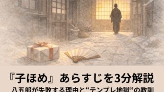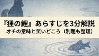 寄合酒を3分で要約。金欠の寄合が無茶な調達→料理失敗→擂りこぎの勘違いで落ちる流れを整理。別題(田楽喰い・ん廻し・運廻し)も混乱ゼロで解説。