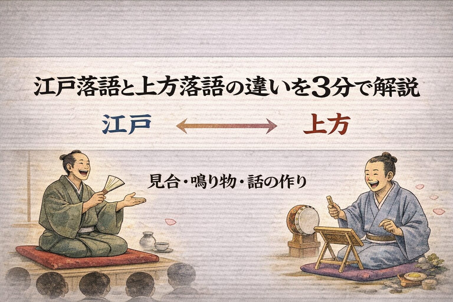 ここを押さえると、「なぜ上方は見台を叩くのか」「なぜ江戸は引き算の美学になりやすいのか」が一気につながります。