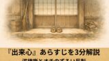 落語『出来心』のあらすじを3分で解説。ドジな泥棒と貧乏人のごまかしが、なぜ最後にきれいなオチへつながるのかを整理します。別題「花色木綿」との関係、サゲの意味、聴きどころまで初見向けに分かりやすくまとめました。