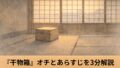 落語『らくだ』を3分で要約。起承転結のあらすじ、登場人物と基本情報、笑いが刺さる理由、サゲ「火屋(ひや)/冷や」の意味まで整理します。