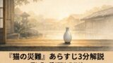 落語『猫の災難』のあらすじを3分で解説。酒好きの男が猫の死骸を前に見栄と嘘を重ねる流れ、サゲの意味、酔客噺としての聴きどころまで、初見でも分かるように整理します。