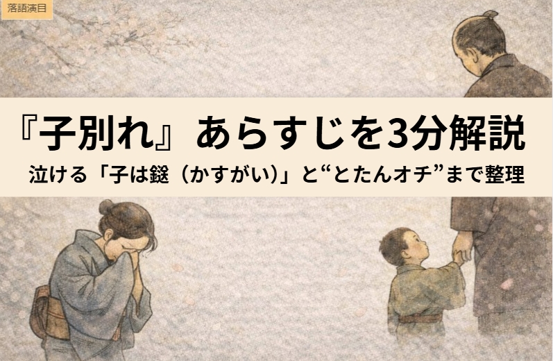 夫婦別れ→父の放蕩→子との再会で回収。“子は鎹”が、笑いを人情に変える噺です。