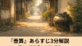 落語『お札はがし』を3分で解説。『牡丹燈籠』の中でも有名な怪談場面のあらすじ、登場人物、怖さの理由、オチの意味まで初見向けに整理します。