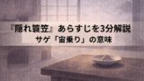 落語『隠れ簑笠』を3分解説。天狗から手に入れた隠れ簑笠が思わぬ形で役立つ流れ、サゲ「宙乗り」の意味、聴きどころを整理。