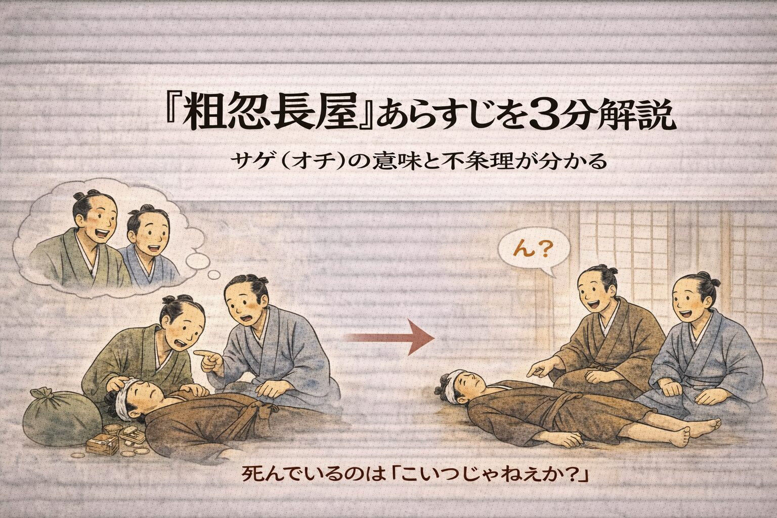 3分で要点を押さえておけば、雑談でも「粗忽長屋って、思い込みが現実を押し流していく噺ですよね」と一言で語れます。