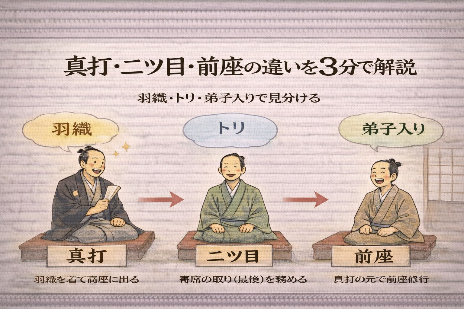 結論から言うと、真打は寄席でトリ(主任)を取れる立場で、原則として弟子を取れる“師匠”側です。一方で、二ツ目と前座にもそれぞれ役割があり、寄席の楽しみ方が変わります。