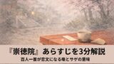 落語『崇徳院』のあらすじとサゲの意味を3分で整理。百人一首がなぜ恋文になるのか、若旦那と熊さんのズレ、地口オチの面白さまでわかります。